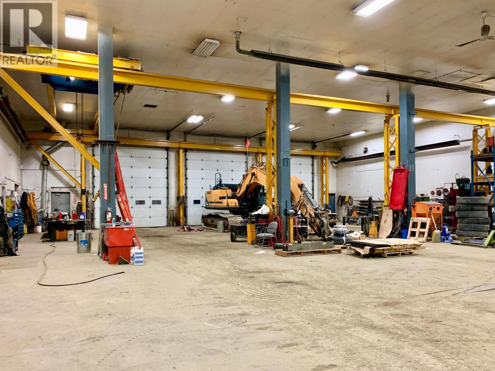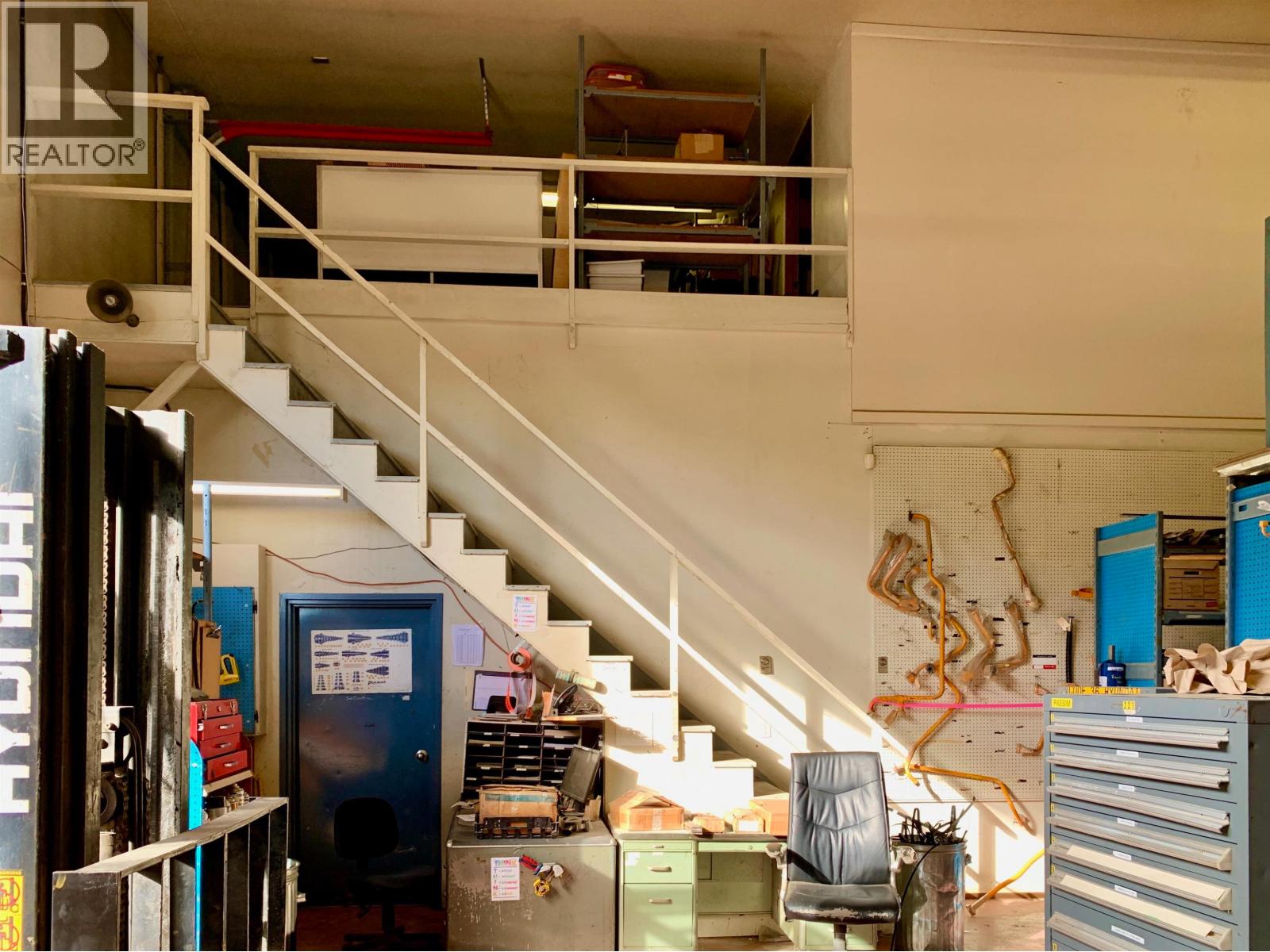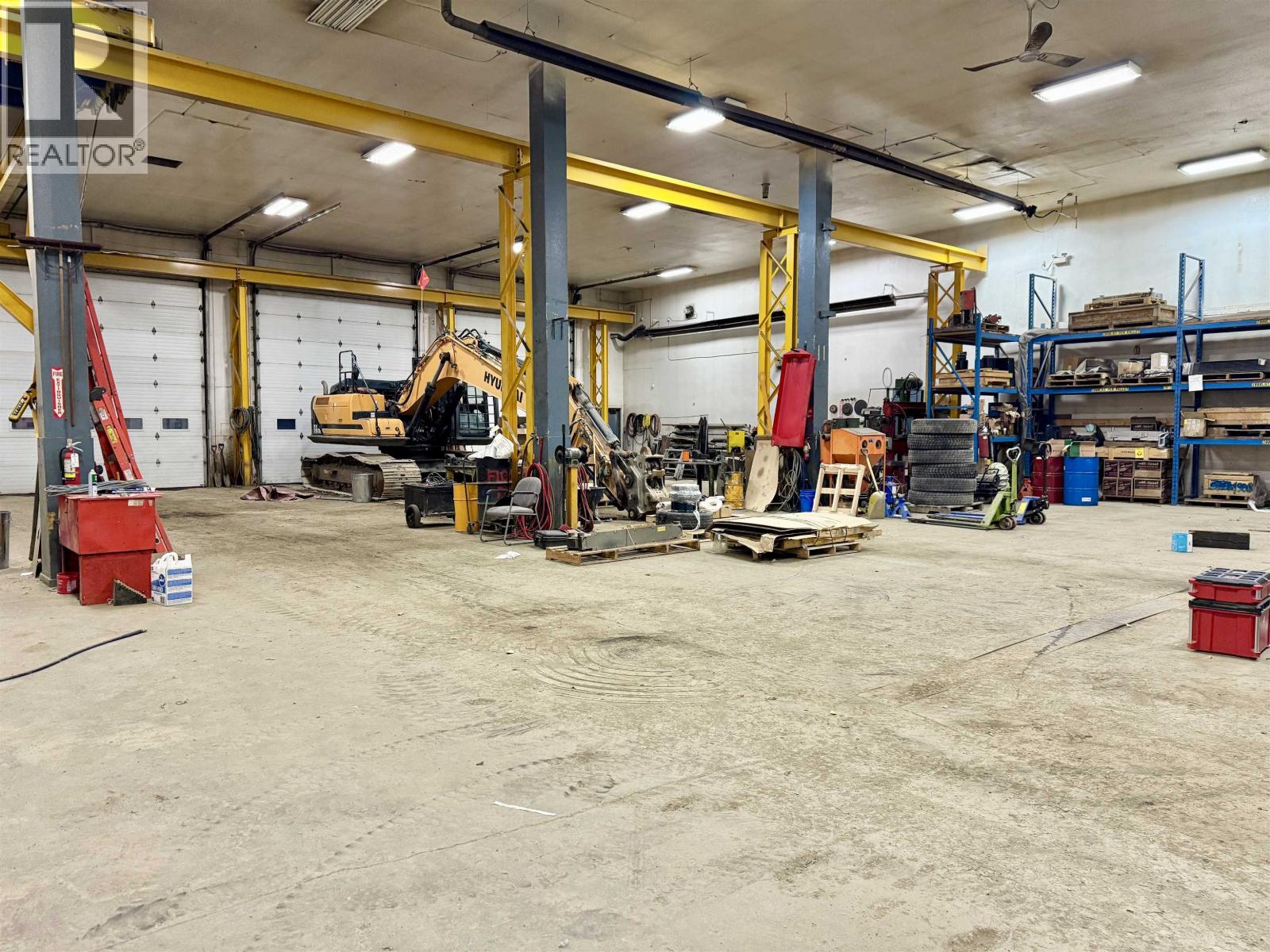 A exceptional industrial building with M1 zoning, 1.37 acres in a prime location with high visibility & easy access off 1st Ave in downtown Prince George. 12,732 sq ft in total with 10,620 sq ft on the main plus upper level office space of 2112 sqft. All measurements approx. The shop is 70 x 90’ with: three drive thru bays with 14’ x 16’ overhead doors; 20’ ceiling; overhead gas heat; Hyundai Hoist crane with 5,000 kg load; access to compressor room, tool room, 2 pce bathroom, electrical room with 600 amp service; additional 2 overhead doors from the back: 10 x 12’ to workshop with 1 T crane & 12 x 14’ to parts area plus mezz. Main front entrance to reception/retail area with service desk; 3 offices; parts office & 2 pce bath. Upper level has: 4 large offices, board room, open multi-purpose area, lunch room, 2 pce & 3 pce bathrooms. Bonus cold storage pole shed 60 x 95’ in the fully fenced back yard & 2 pull thru entrances on either side of the building. Quick possession. (id:2469)