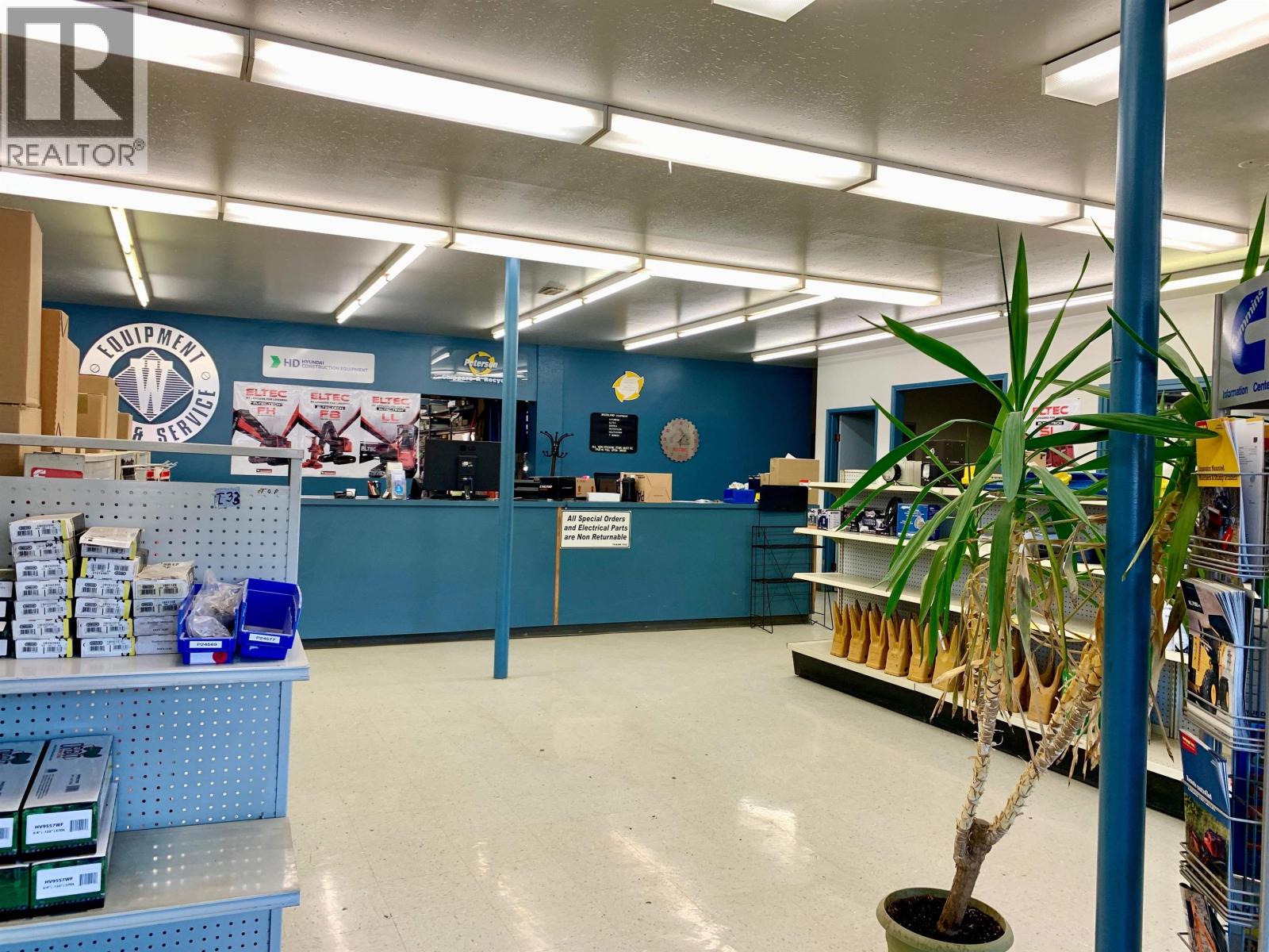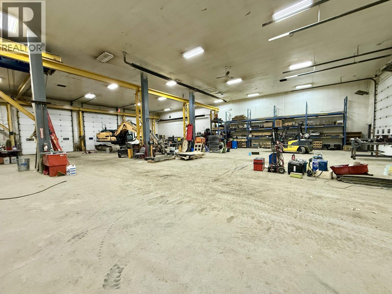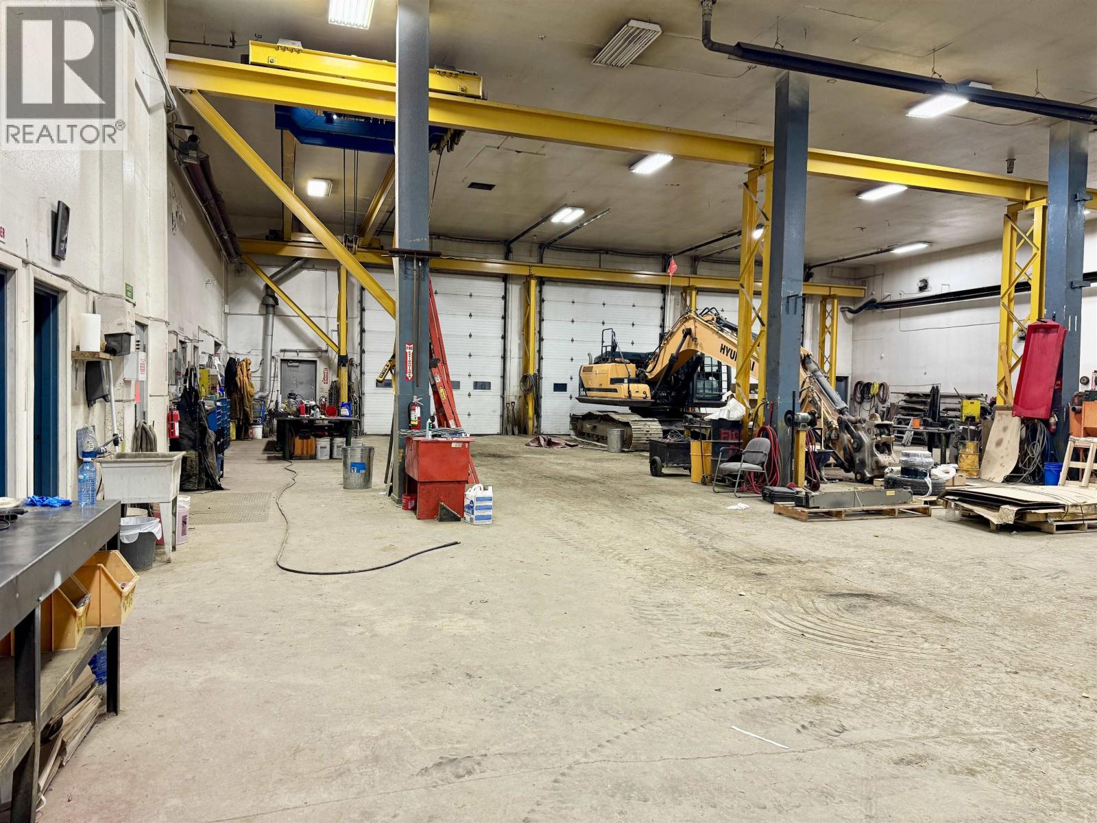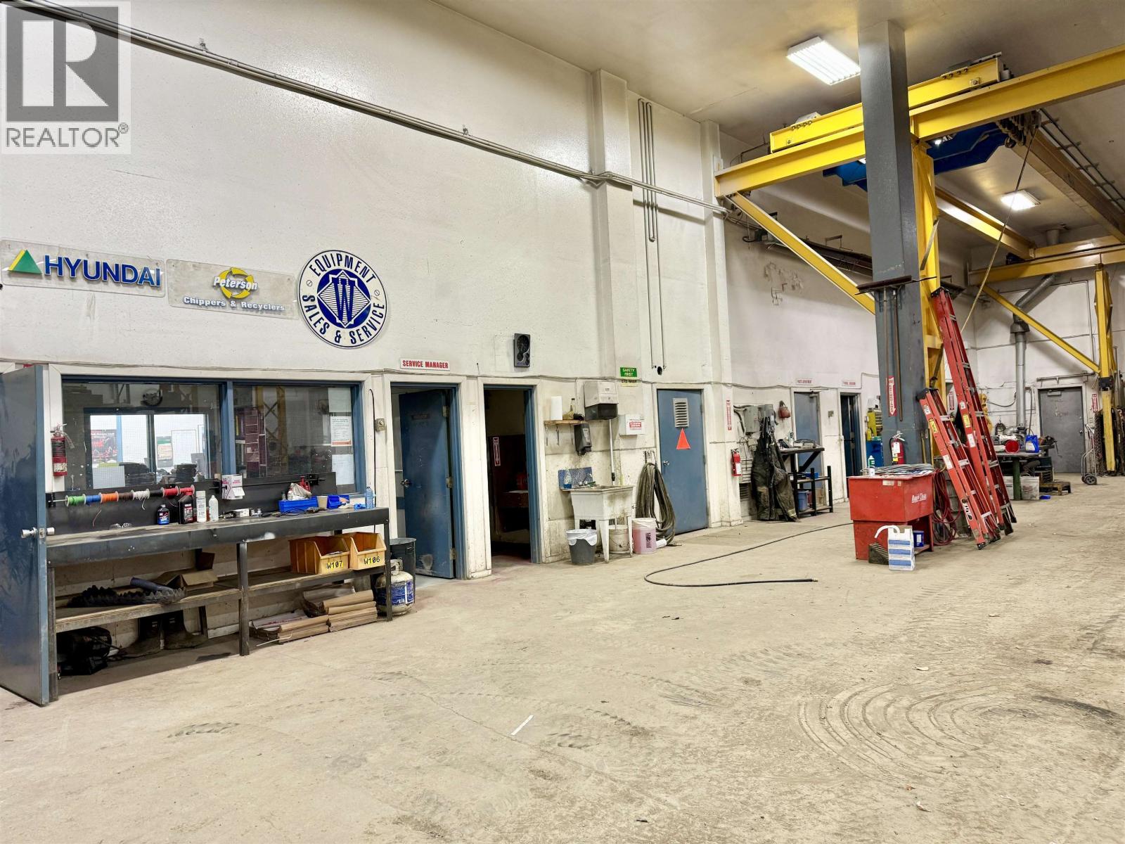 A exceptional industrial building with M1 zoning, 1.37 acres in a prime location with high visibility & easy access off 1st Ave in downtown Prince George. 12,732 sq ft in total with 10,620 sq ft on the main plus upper level office space of 2112 sqft. All measurements approx. The shop is 70 x 90’ with: three drive thru bays with 14’ x 16’ overhead doors; 20’ ceiling; overhead gas heat; Hyundai Hoist crane with 5,000 kg load; access to compressor room, tool room, 2 pce bathroom, electrical room with 600 amp service; additional 2 overhead doors from the back: 10 x 12’ to workshop with 1 T crane & 12 x 14’ to parts area plus mezz. Main front entrance to reception/retail area with service desk; 3 offices; parts office & 2 pce bath. Upper level has: 4 large offices, board room, open multi-purpose area, lunch room, 2 pce & 3 pce bathrooms. Bonus cold storage pole shed 60 x 95’ in the fully fenced back yard & 2 pull thru entrances on either side of the building. Quick possession. (id:2469)