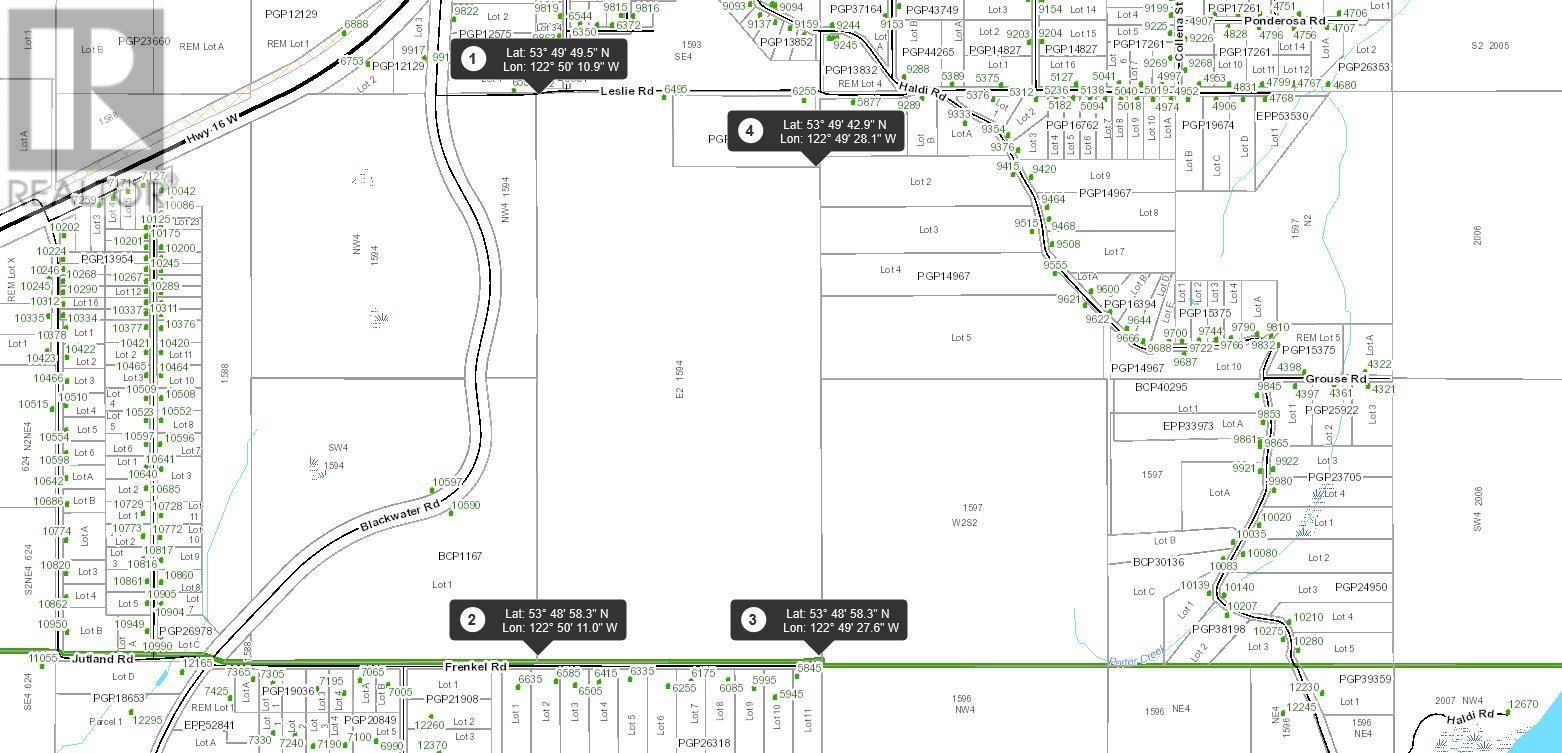 297 Acres of development land within the city limits of Prince George. Road access off Frenkel Road and Leslie Road. Zoned AF allows many uses including residential development. Excellent location, close to West Lake Provincial Park and the University of Northern BC. This property gives both rural living and close proximity to the City with all the amenities. GPS (Lat: 53° 48' 58.3" N - Lon: 122° 50' 11.0"W) Map measurements are approximate, Buyer to verify if deemed important. Buyer to verify access. 160 Acre property beside this parcel also available. (id:2469)