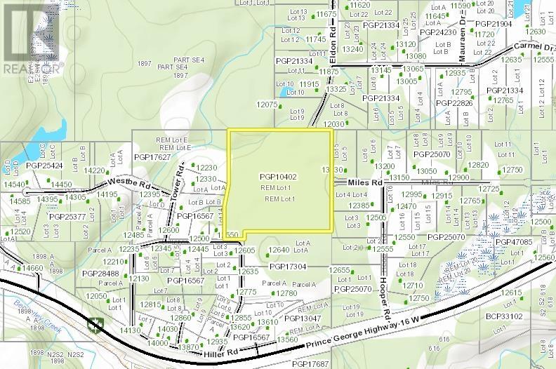 Incredibly rare 43.82-acre parcel in highly desirable Beaverly, offering exceptional privacy and endless possibilities. Whether you dream of building your private retreat or developing and subdividing into smaller lots, this property is ready for your ideas. With three access points off Hillcrest, Miles, and Eldon Road, the subdivision potential is huge. Hydro and natural gas are available nearby, making future development even more attractive. Don't miss this chance to own a large, versatile piece of land in one of Prince George's most sought-after areas! Also on Commercial - see MLS# C8067390 (id:2469)